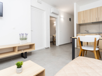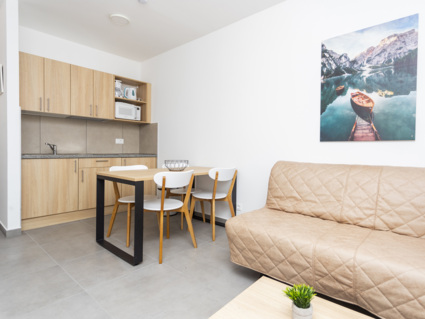 Start the day on the terrace with the sound of crickets and the smell of the sea! Enjoy the supreme style and comfort of the 42 m2 apartment. It is an ideal choice for two adults and a child up to 12 years old. The apartments are oriented towards the sea, and parking spaces are located in the immediate vicinity of the apartments.